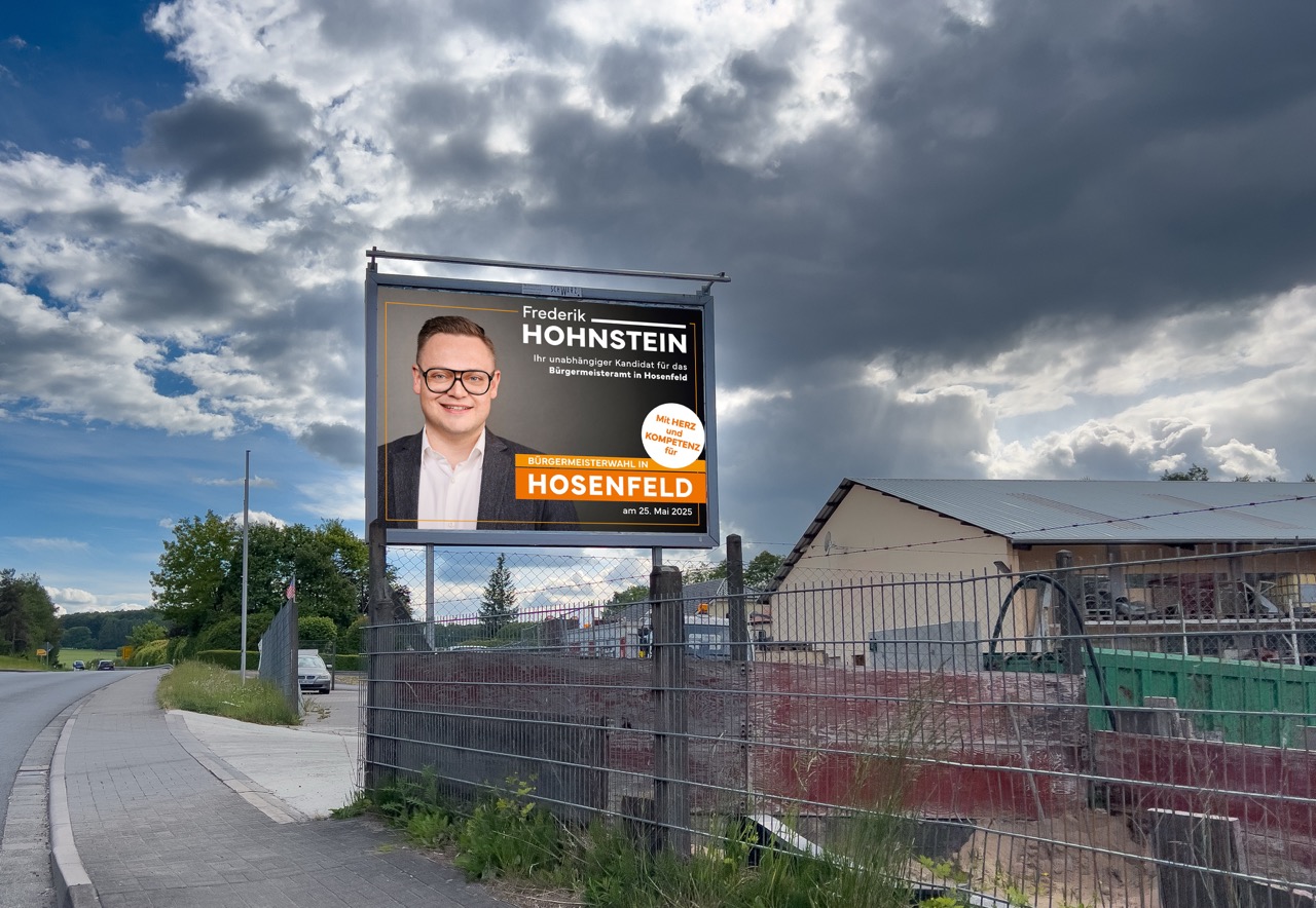 Von den ersten Ideen bis zum Wahlsieg waren wir als kreative und strategische Partner an seiner Seite. In enger Abstimmung entwickelten wir das komplette Branding und Corporate Design Konzept, das Frederik Hohnstein nicht nur ein klares visuelles Profil gab, sondern auch seine Werte und Persönlichkeit authentisch transportierte.
